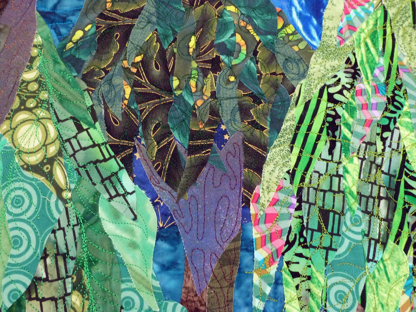 For the foreground of the light side my mom suggested quilting some straight lines (after I had a little mini-meltdown on the phone) so I did that. I increased the distance between the lines as I came into the foreground (to hopefully give some added perspective), but the lines blend in so much I don't think you can tell. I also think it probably needs more quilting in that region, but so much will be covered by Seymour that I'm going to wait to do any more quilting till his skeleton is on there.
